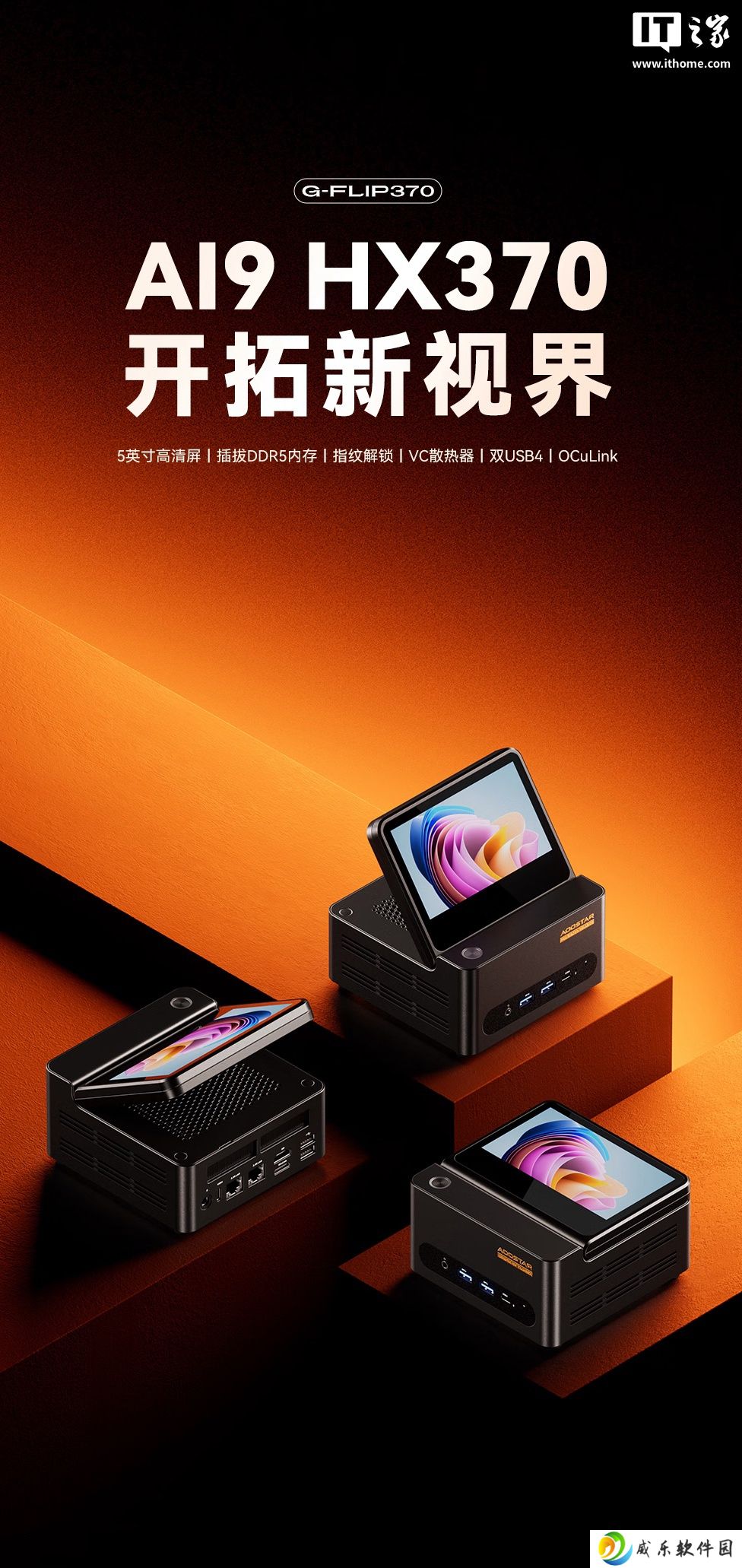 天钡 G-FLIP 370 迷你主机首销:锐龙 AI 9 HX 370 + 5.5 英寸可折叠副屏,4299 元起